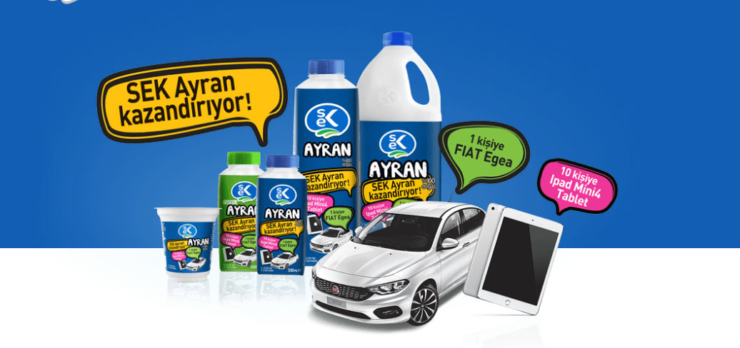 Sek ayran tarafından ürünlerin bilinirliğini arttırmak için düzenlenen kampanyada sitedeki formu doldurarak çekilişe katılabilir ve araba sahibi olabilirsiniz. Kampanyaya katılabilmek için site üzerinde bulunan bilgileri doğru olarak doldurmanız ve Sütaş tarafından tarafınıza gönderilecek olan reklam bildirimlerine izin vermeniz gerekiyor. Formu doldurduğunuzda size bir onay SMS’i gönderilecek ve SMS içerisindeki kodu siteye girmeniz halinde çekilişe katılmış olacaksınız.